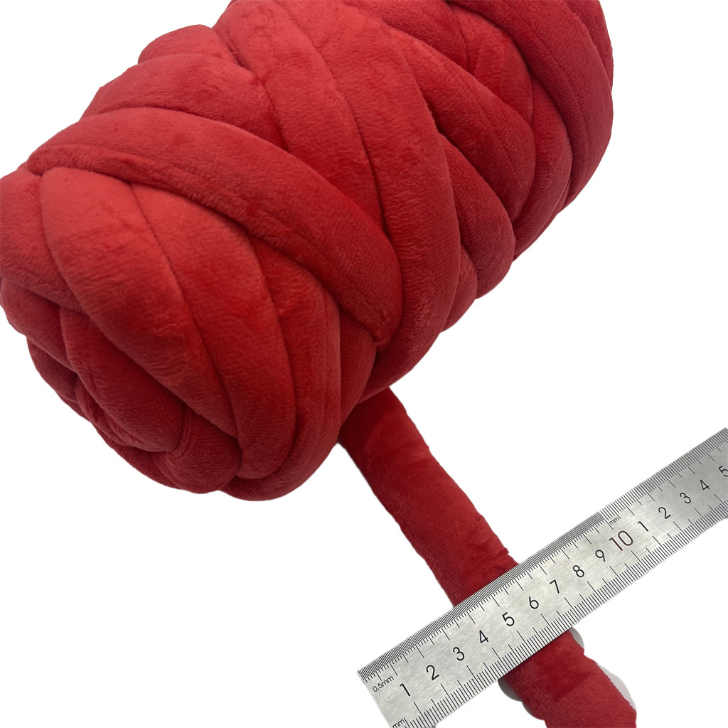 Denna produkt är ett fabrikstillverkat polyestergarn i grossistledet, speciellt designat för fingerstickning. Garnet är konstruerat som ett sammetsrör med en konsekvent diameter på 2 cm, vilket ger det en rejäl, tredimensionell form. Dess sammansättning är en blandning av polyester och bomull, som kombinerar polyesterns strukturella stabilitet och motståndskraft med den naturliga touchen av bomull. Denna materialkombination bidrar till garnets definierade form och taktila egenskaper. Den förformade rörformade strukturen underlättar fingerstickningsprocessen, vilket möjliggör ett effektivt skapande av texturerade tyger och tillbehör utan behov av traditionella verktyg. Dess dimensioner och konstruktion gör den lämplig för att producera föremål med en voluminös och mjuk textur.