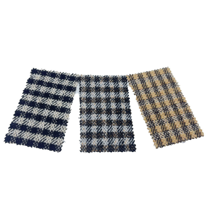 Detta tyg, betecknat som artikel 3811, är en tweedtextil som består av 10 % ull och 90 % andra fibrer. Med en massa per ytenhet på 550 g/m ger den en tung konstruktion. Den bruna ytan har ett rutmönster integrerat i en kypertvävd bas, vilket skapar diagonala linjer under rutnätet. En borstande finish har applicerats på tyget, vilket lyfter upp fibrerna för att skapa en mjukare ytstruktur. Denna teknik förändrar tygets taktila egenskaper samtidigt som den strukturella integriteten hos twillväven bibehålls. De tekniska specifikationerna resulterar i ett material med kombinerad visuell mönsterdefinition och förbättrad handkänsla på ytan, vilket gör det användbart för pälstillverkning där både hållbarhet och taktil komfort krävs.