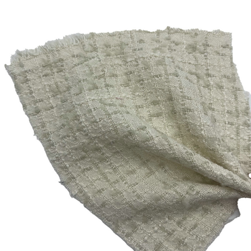Detta tyg, betecknat som artikel 23017, är en jacquardvävd tweedtextil som består av 100 % polyester. Med en massa per ytenhet på 265 g/m², presenterar den en lätt konstruktion som är lämplig för damkläder. Den rosa basen har ett fjärilsmönster integrerat direkt i tyget genom jacquardvävprocessen. Denna teknik skapar en exakt motivdefinition inom den vävda strukturen. Hela polyesterkompositionen säkerställer dimensionell stabilitet och konsekvent prestanda under plaggproduktion. Dessa tekniska egenskaper resulterar i ett tyg med tydlig artikulation och strukturell integritet, vilket gör det användbart för klädesplagg där detaljerade designelement och materialtillförlitlighet krävs.