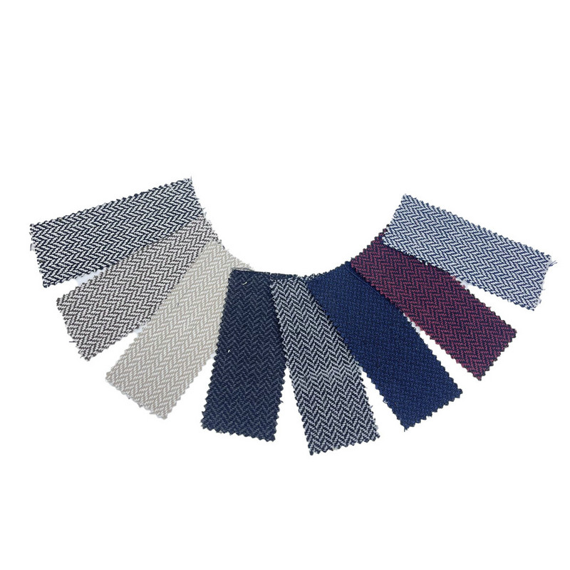 Detta tyg, betecknat som artikel 3947, är en jacquardvävd tweedtextil som består av 100 % andra fibrer. Med en massa per ytenhet på 480 g/m ger den en medelviktig konstruktion. Den mörkblå ytan kombinerar ett fiskbensmönster med en präglad teknik, vilket skapar en upphöjd struktur på specifika områden av de V-formade motiven. Denna tillverkningsprocess förbättrar den tredimensionella kvaliteten på den vävda strukturen samtidigt som den geometriska designens integritet bibehålls. De tekniska specifikationerna resulterar i ett tyg med uttalad ytdimensionalitet och strukturell stabilitet. Dessa egenskaper gör denna jacquardvävda tweed användbar för jackatillverkning där texturintresse och mönsterdefinition krävs.