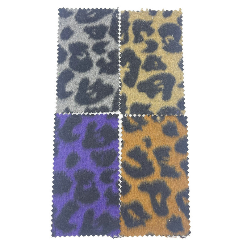 Detta tyg, betecknat som artikel 2196, är en tweedtextil som består av 10 % ull och 90 % andra fibrer. Med en massa per ytenhet på 580 g/m ger den en tung konstruktion. Ytan har ett leopardmönster kombinerat med en plyschstruktur för långt hår, som uppnås genom specialiserade vävnings- och efterbehandlingsprocesser. Denna konstruktion skapar en utpräglad tredimensionell yta med varierande pålhöjder. Ullblandningens sammansättning bidrar till tygets spänst och värmeisolerande egenskaper. Dessa tekniska egenskaper resulterar i ett material med stark visuell kontrast och taktilt djup, vilket gör det användbart för klädselprojekt där distinkt textur och ytpåverkan krävs.