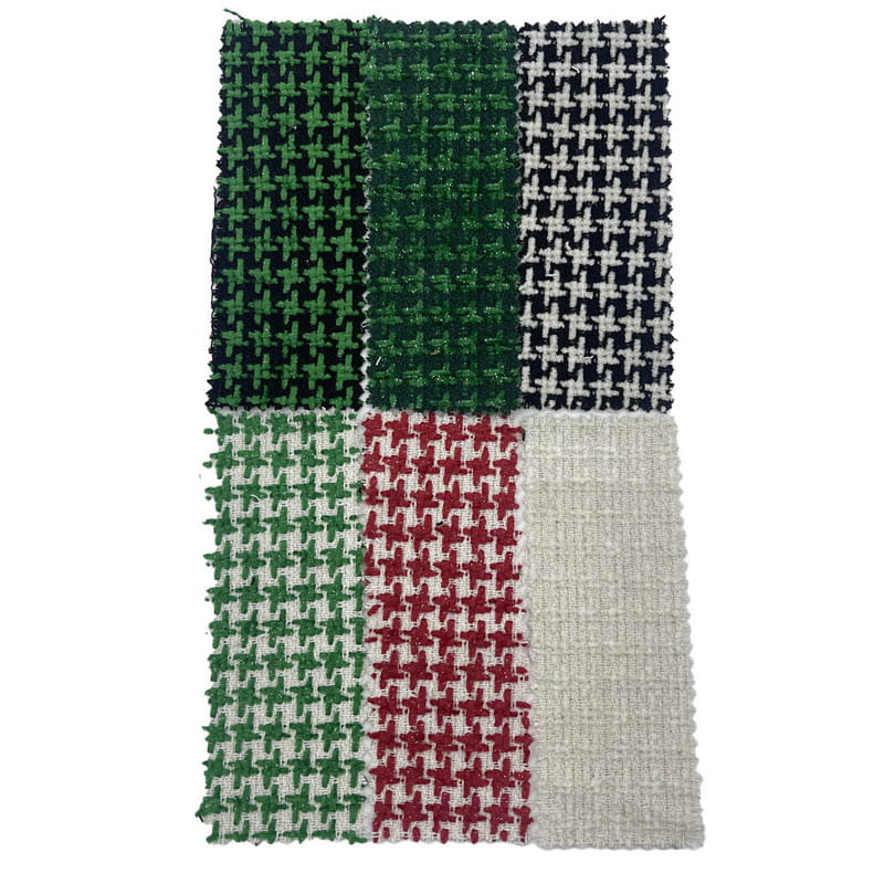 Detta tyg, betecknat som artikel 2410, är en jacquardtextil som består av 100 % andra fibrer. Med en massa per ytenhet på 550 g/m ger den en tungviktskonstruktion. Ytan kombinerar metalliskt garn med en präglingsteknik, vilket skapar ett upphöjt mönster som förändrar både visuella och taktila egenskaper. Jacquardvävprocessen möjliggör exakt integrering av metallelementen i designen. Denna tillverkningsmetod resulterar i ett tyg med definierad textur och ljusreflekterande egenskaper. Den angivna vikten bidrar till materialets hållbarhet och strukturella integritet. Dessa tekniska egenskaper gör detta jacquardtyg tillämpbart för leksakstillverkning där visuellt intresse och materialförmåga krävs.