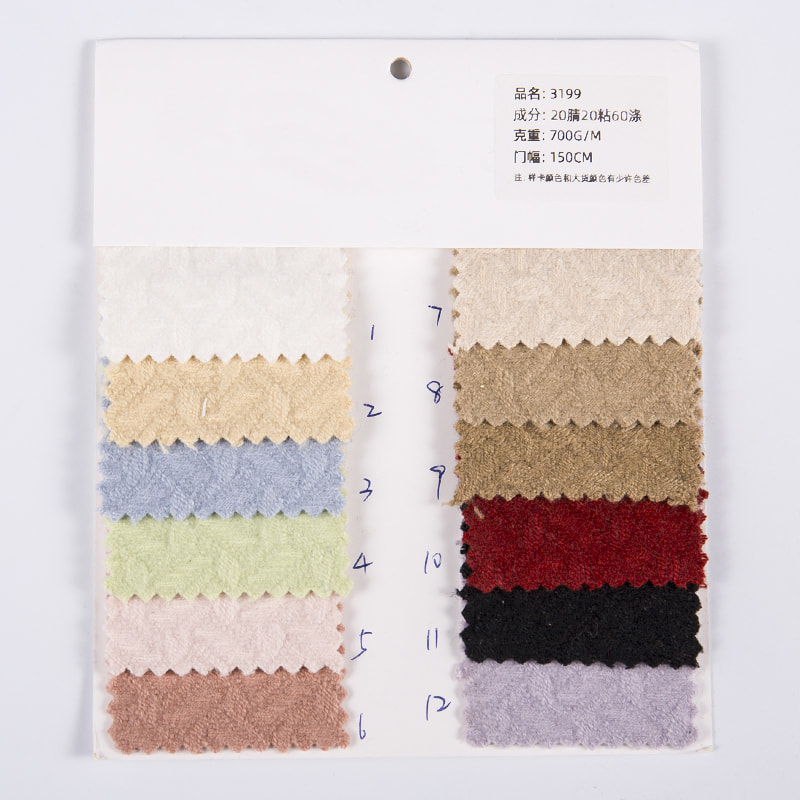 Mjukt rörande akrylviskospolyester tweedtyg för kappor 3199 är en kombination av 20 % akryl, 20 % viskos och 60 % polyester. Detta gyllene snitt säkerställer inte bara tygets hållbarhet och rynkbeständighet, utan ger det också oöverträffad mjukhet och hudvänlighet. Tillägget av akryl gör tyget varmt samtidigt som det har god andningsförmåga, vilket gör att du kan känna dig bekväm även under kalla årstider. 20 % viskos, med sina naturliga fiberegenskaper, tillför utmärkt fuktabsorption och andningsförmåga till tyget, vilket gör det mer bekvämt att bära. Den höga andelen 60% polyester ger detta tyg utmärkt elasticitet och slitstyrka, vilket kan hålla tyget platt och krispigt oavsett om det är dagligt slitage eller långvariga aktiviteter. Tweedvävningsprocessen gör att tygets yta uppvisar en unik textur och struktur, vilket lägger till ett unikt modeelement till pälsens design. Detta tyg är lämpligt för att göra kappor av olika stilar, oavsett om det är en klassisk vindjacka eller en moderiktig casual kappa, kan det enkelt kontrolleras. Dess mjuka touch, utmärkta värmebevarande och fashionabla utseende kommer att bli höjdpunkten i din vinteroutfit.