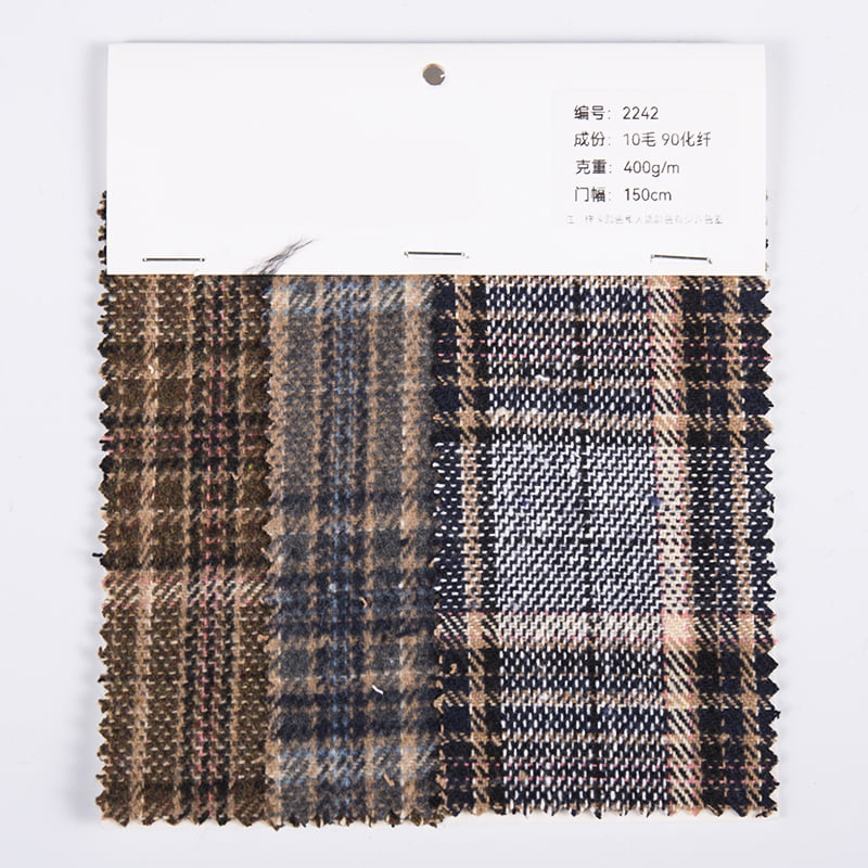 OEM/ODM Tartan Pläd som passar 10% Ull 90% Kemisk Fiber Tweed Tyg 2242. Vi har mer än 20 års branscherfarenhet och är kända för högkvalitativa tyger och Garner.
