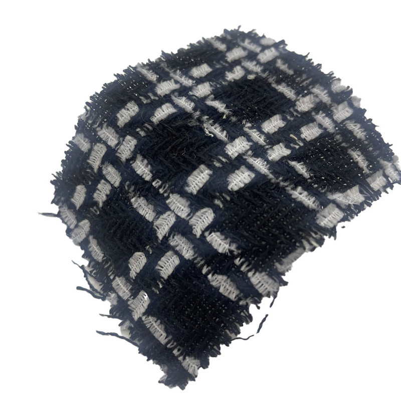 Detta tyg, betecknat som artikel 23545, är en vävd tweedtextil som består av 39 % polyester, 36 % ull och 25 % bomull. Med en massa per ytenhet på 255 g/m², presenterar den en lätt konstruktion. Tyget har ett svart rutigt mönster skapat genom vävningsprocessen, som bildar ett strukturerat rutnät på ytan. Blandningen av polyester, ull och bomull kombinerar formstabiliteten hos syntetfibrer med den naturliga fukthanteringen av cellulosa- och proteinfibrer. Denna sammansättning resulterar i ett tyg med balanserad hållbarhet och andningsförmåga. Dessa tekniska specifikationer gör denna vävda tweed användbar för olika klädapplikationer där mönsterdefinition och bärkomfort krävs.